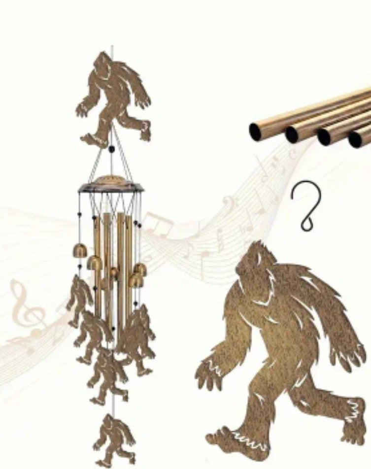Bigfoot Wind Chimes - Metal Sasquatch Garden Decor with 6 Hanging Bells, Outdoor Wind Chime for Patio, Porch, Lawn, or Home Gift, Porch Enhancement | Rustic Wind Chime | Durable Metal, Wind Chimes for Outside