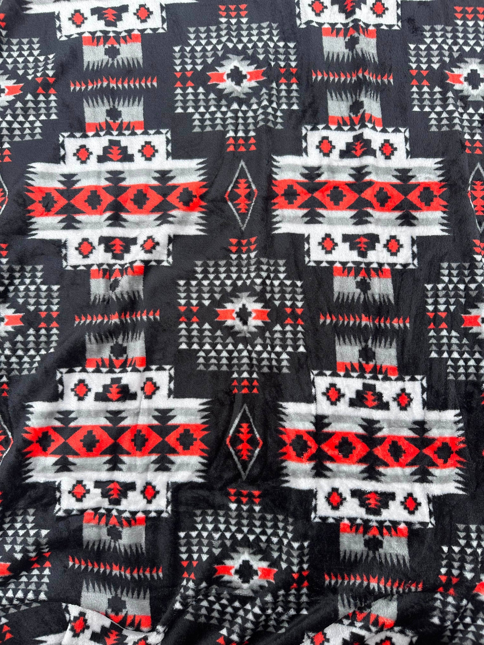 NEW BLACK & RED SOUTHWEST AZTEC QUEEN SIZE MID-WEIGHT THROW BLANKET