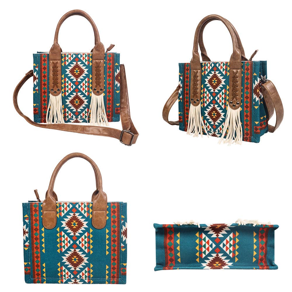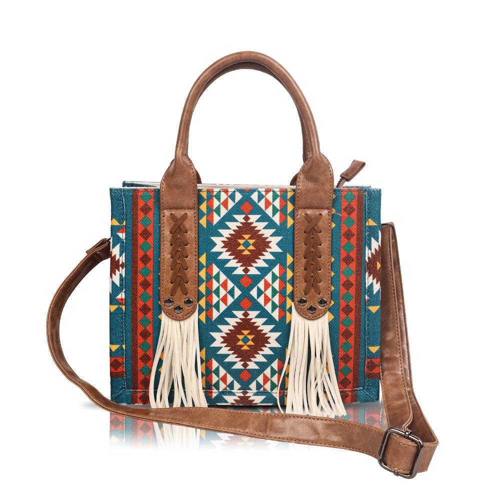 Fringe Blue Aztec Western Tote Bag/Purse