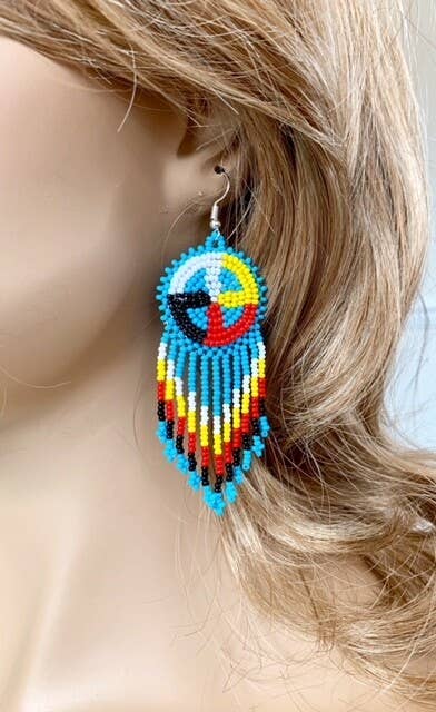 Handmade Turquoise Blue Native Style Fringe Earrings