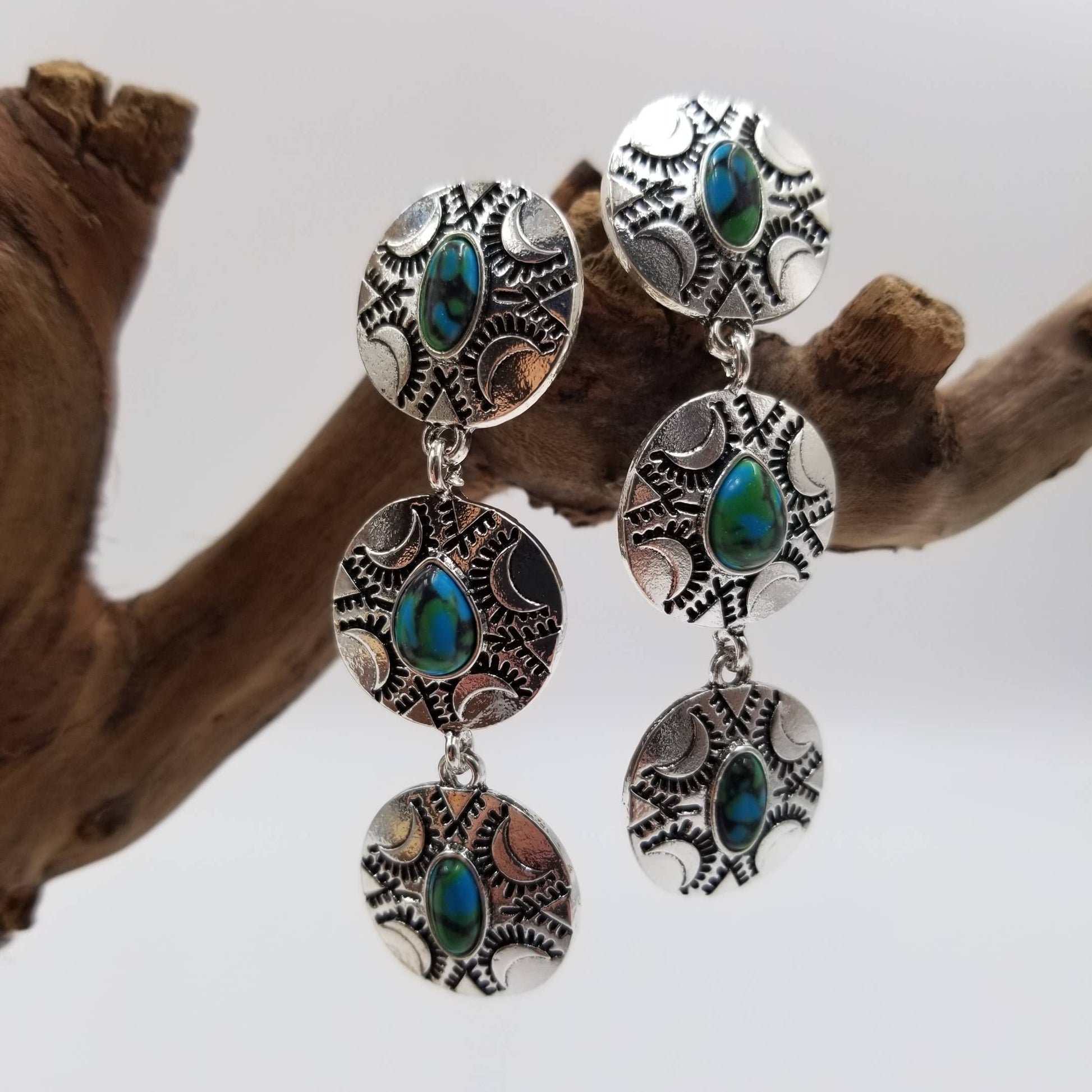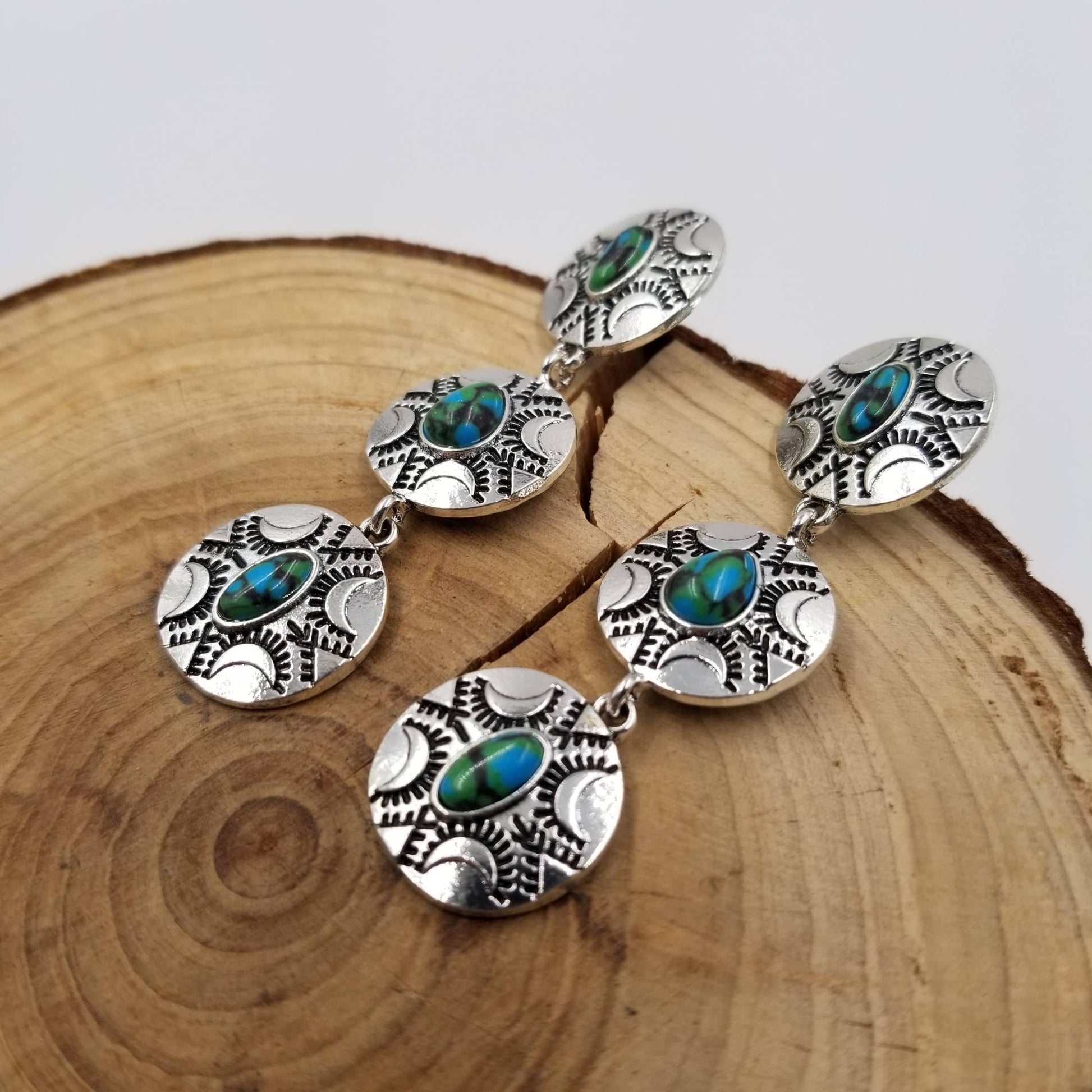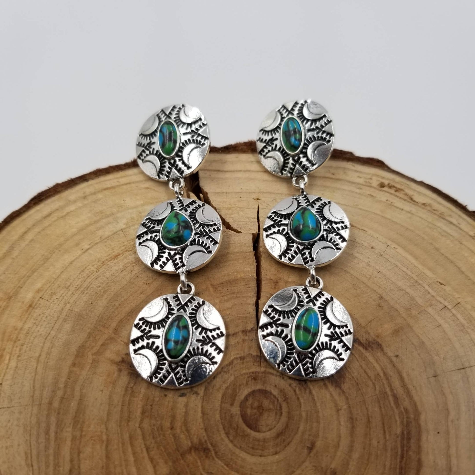 Retro Stacked Disc Turquoise Earrings